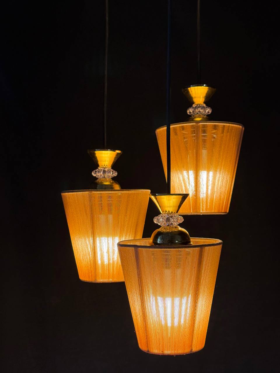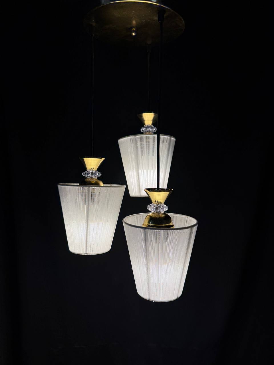 لوستر اویز سه شعله مدل عسلی خطدار گرد
