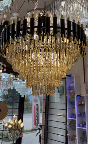 لوستر کریستالی تابان بدنه مشکی مدل بادامی ۶۰ سانت