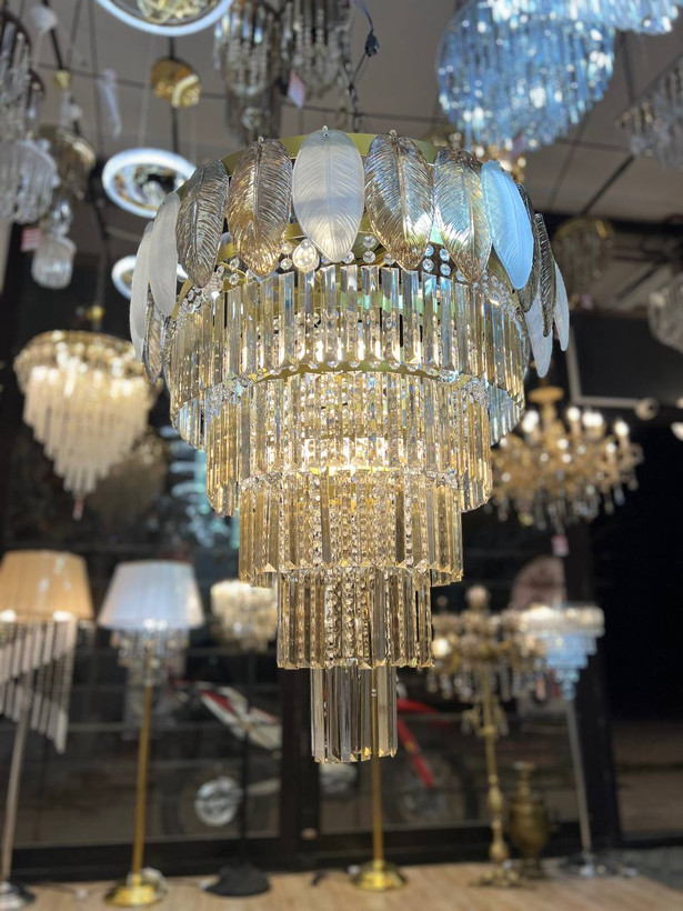 لوستر کریستالی تابان مدل برگی طلا ۶« سانت
