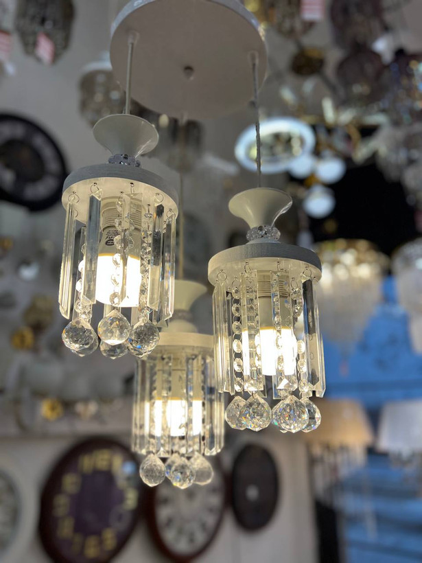 لوستر اویز کریستالی سه شعله کاردی گوی سفید