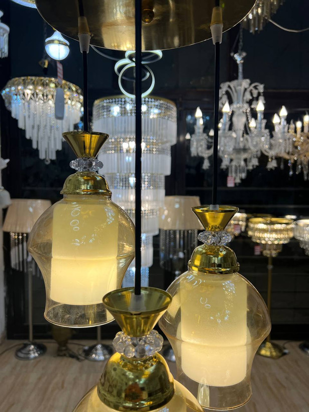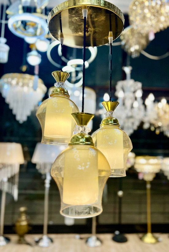 لوستر اویز سه شعله حبابی دو گلس طلایی