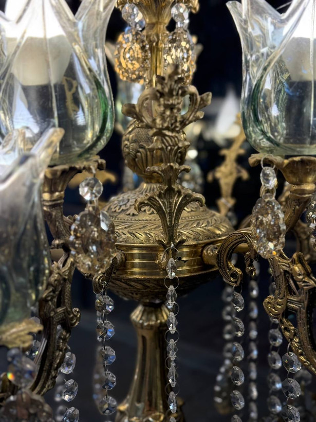 اباژور کنار سالنی برنز برنجی 5 شاخه 16 شعله