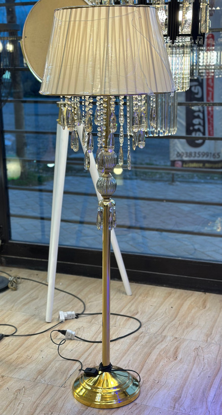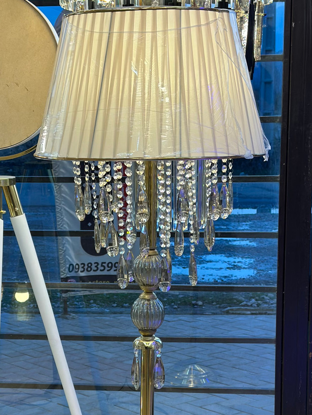 آباژور (کنار سالنی) بدنه استیل طلایی مدل بادامی با گوی شیشه ای