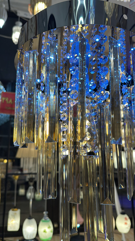 لوستر استیل آویز بدنه کروم . کریستال تمام کاردی ۱۵ برنزی وارداتی
