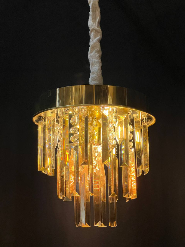 لوستر آویز کریستالی طلایی سایز ۳۰