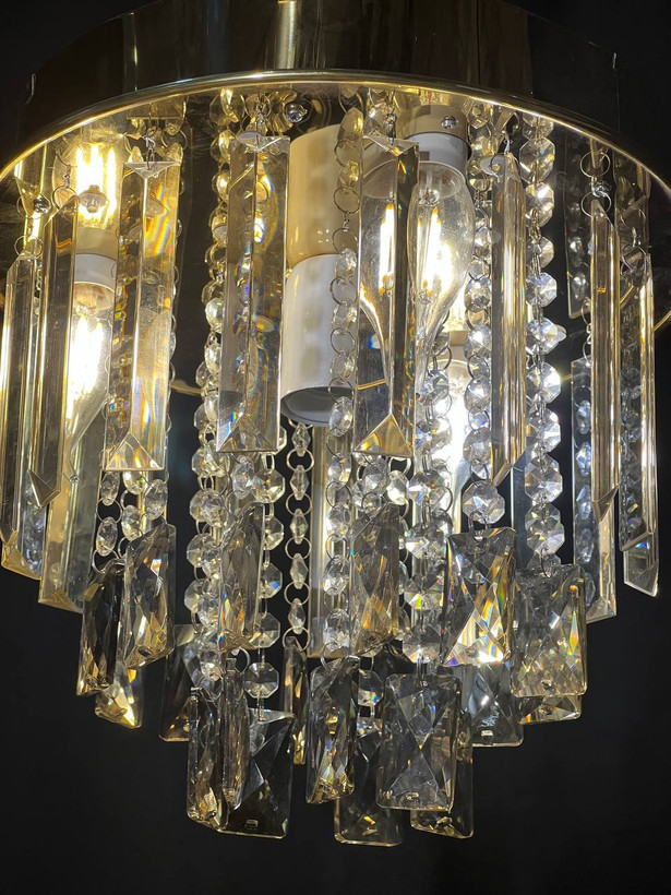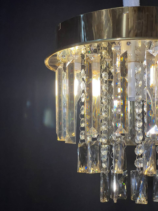 لوستر آویز استیل کریستالی طلایی سایز ۳۰