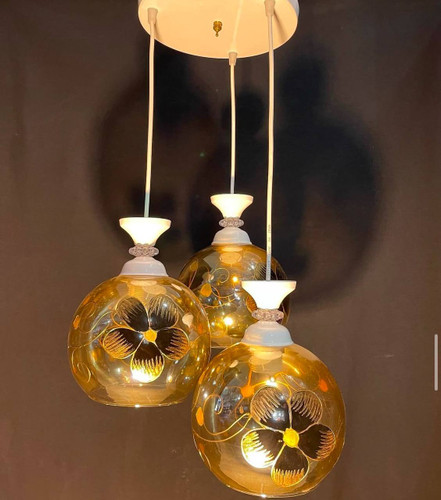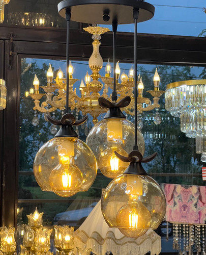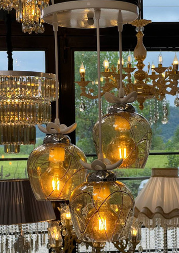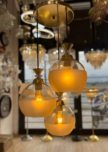 لوستر اویز سه شعله مدل حباب عسلی ساده