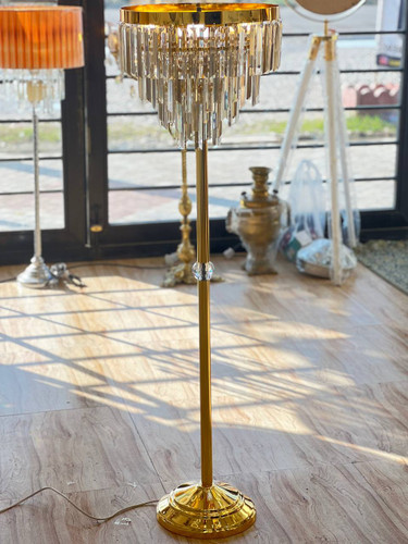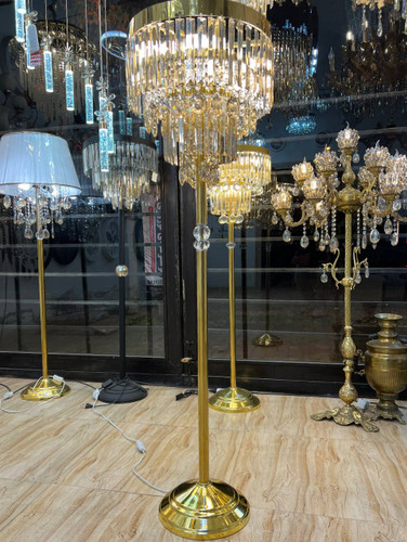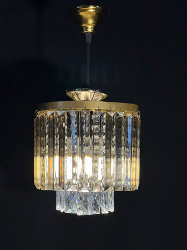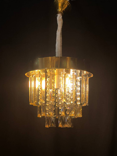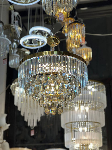 لوستر آویز استیل کریستالی طلایی سایز ۳۰