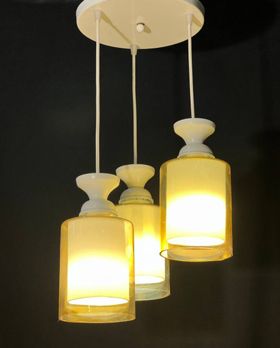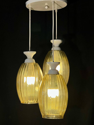 لوستر اویز سه شعله مدل عسلی خطدار گرد