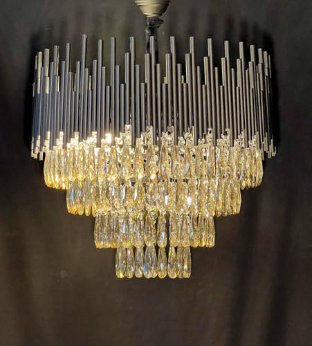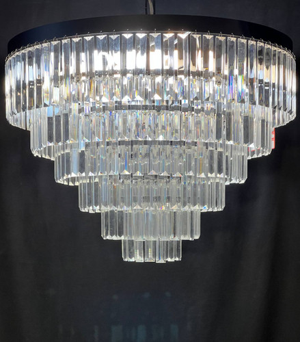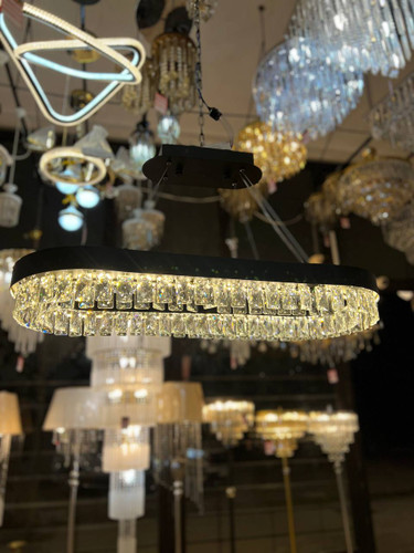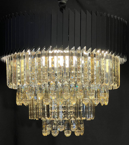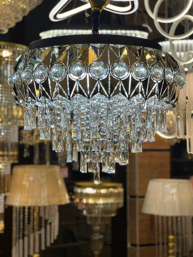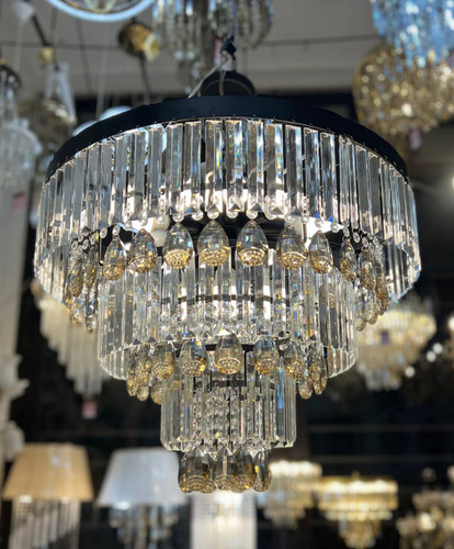 لوستر کریستالی تابان بدنه مشکی مدل بادامی ۶۰ سانت