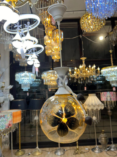 لوستر آویز تک شعله مدل شیپوری قهوه ای