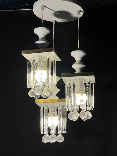 لوستر اویز کریستالی سه شعله کاردی گوی سفید