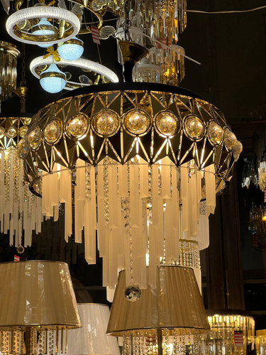 کنار سالنی لوستری کریستالی مدل گوی طلایی