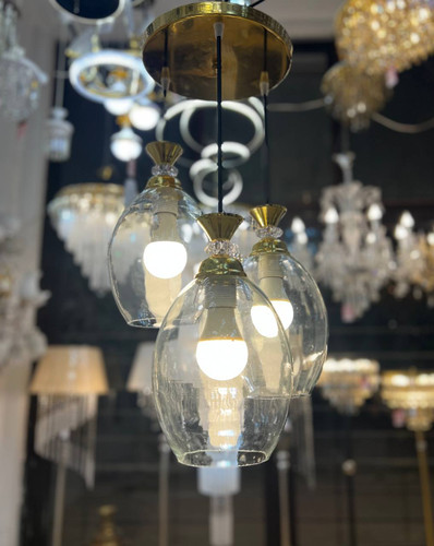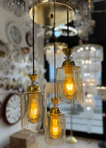 لوستر اویز سه شعله حبابی شفاف طلایی