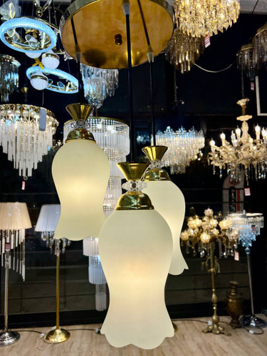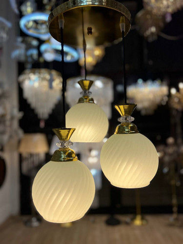 لوستر آویز سه شعله کریستالی کاردی و گوی ۳۰
