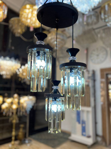 لوستر اویز سه شعله کریستالی مدل تمام کاردی