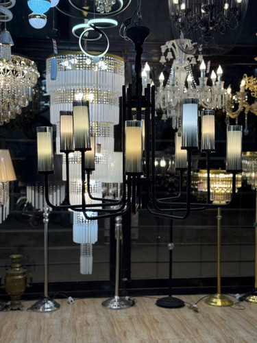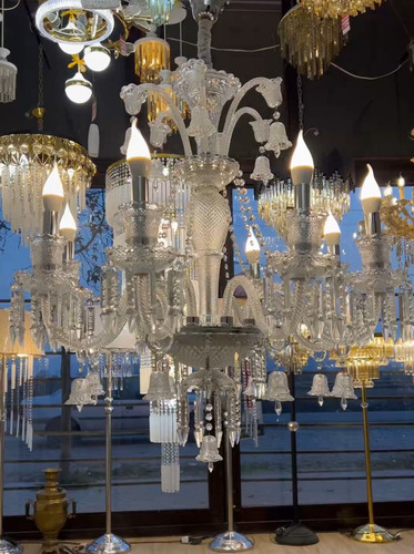 لوستر باکارات خارجی ۸ شاخه ۸ شعله. رنگ کرم سفید