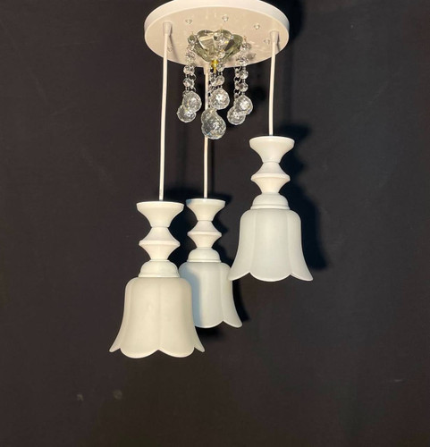 لوستر آویز سه شعله کریستالی تمام کاردی سفید