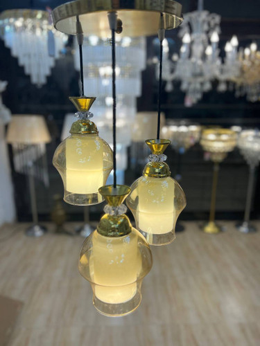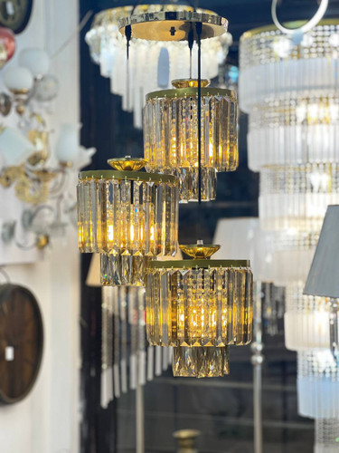 لوستر اویز سه شعله کریستالی تمام کاردی شامپاینی