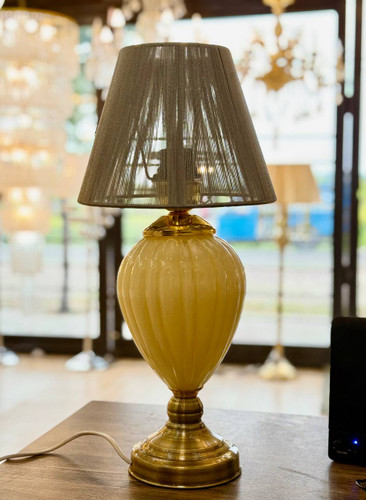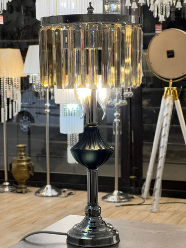 آباژور کریستالی مدل بامبو با کلاهک کرم نخی
